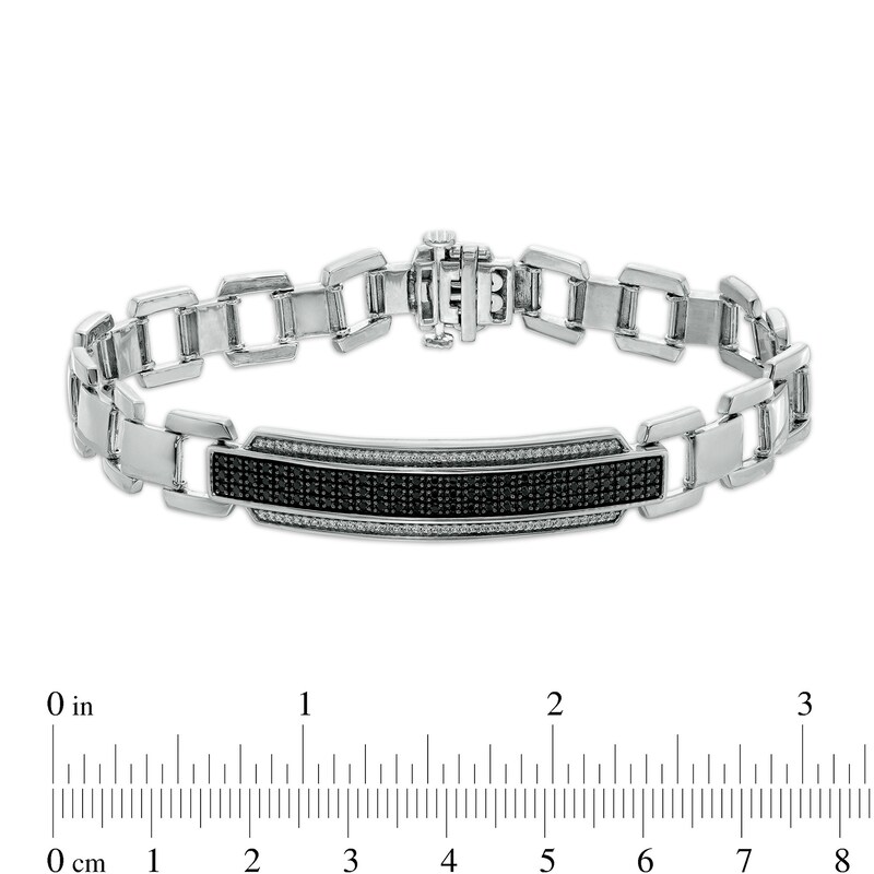 Men S 1 Ct T W Black Enhanced And White Diamond Triple Row Border Id Bracelet In Sterling Silver 8 5 Zales Outlet